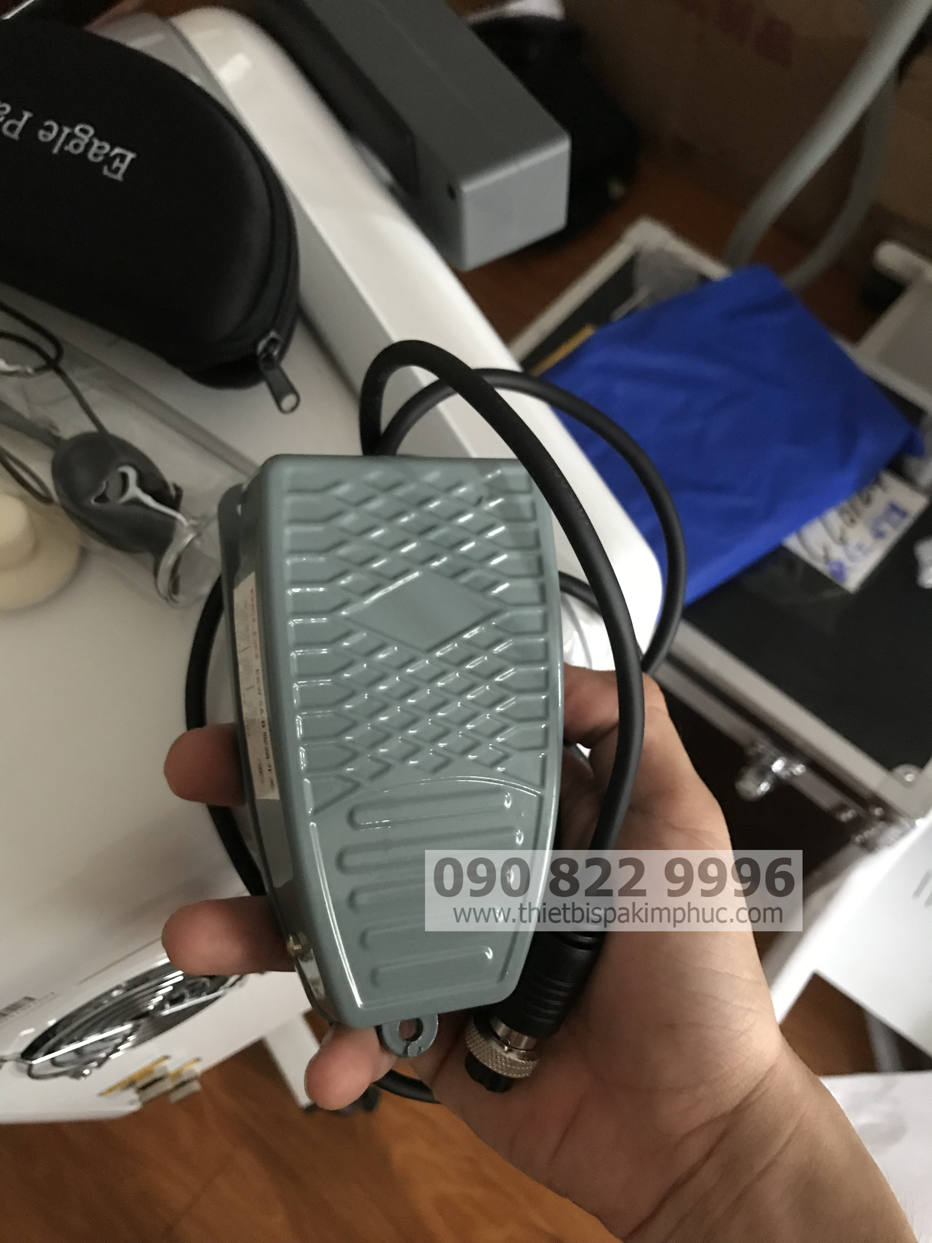 - Tay cầm dạng súng (màu đen) có thể nói là tay cầm tốt nhất hiện nay trong phân khúc máy tầm trung. Bởi bên trong tay cầm được trang bị bóng đèn cao cấp nhập khẩu UK cho tuổi thọ lên tới 1.000.000 tia. Kết hợp với tia laser dẫn đường giúp việc điều trị các vị trị nhỏ trở nên dễ dàng hơn.