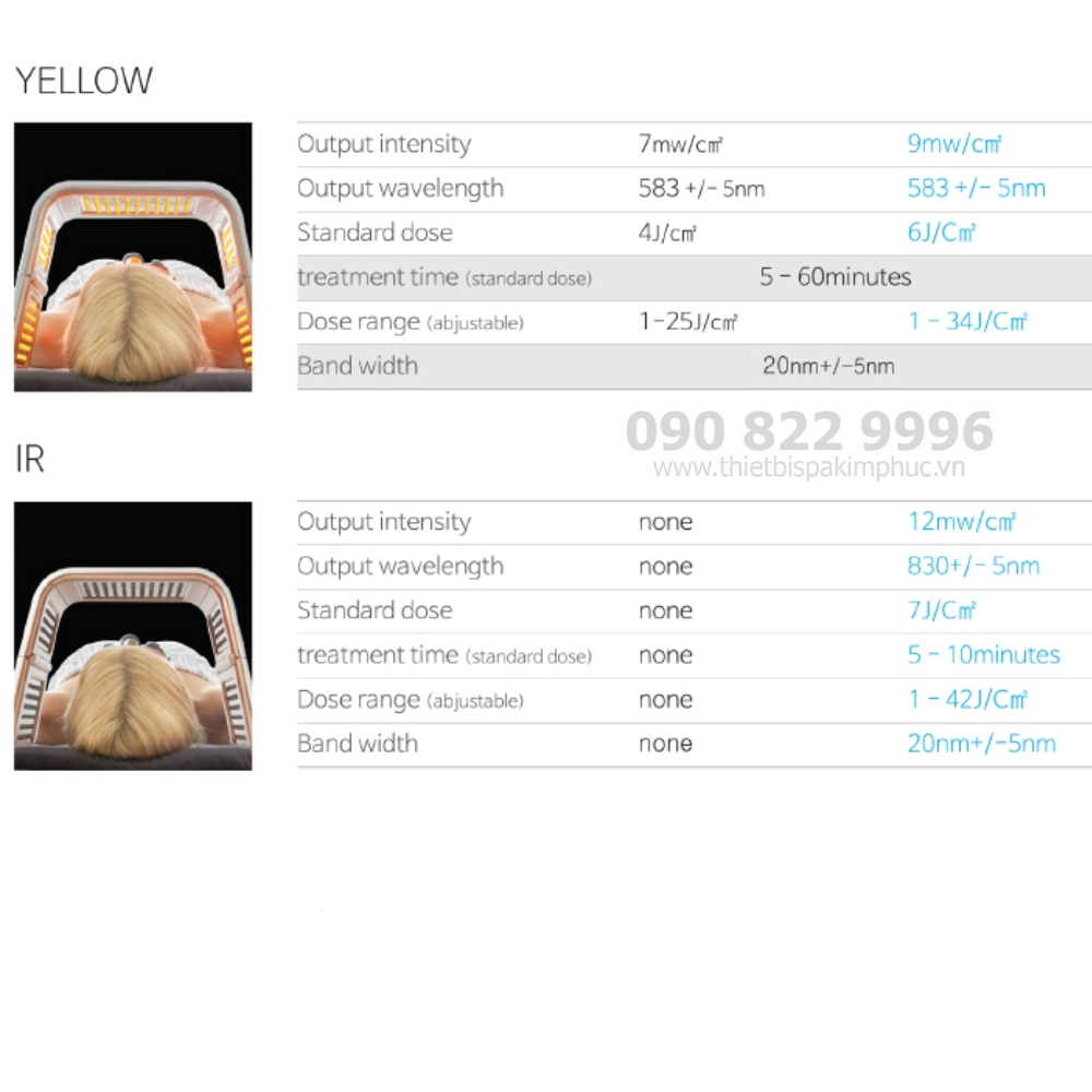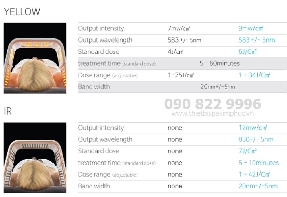 - Đây là một thiết bị chiếu xạ nguồn sáng phức tạp sử dụng các thành phần LED SMD cận hồng ngoại đặc biệt có độ sáng cao, mạnh hơn đèn omega hiện có và mang lại hiệu quả tuyệt vời cũng như chăm sóc an toàn mà không có nguy cơ hư hỏng do nhiệt, lão hóa do ảnh và vết thương, nhược điểm của điều trị bằng laser nói chung.