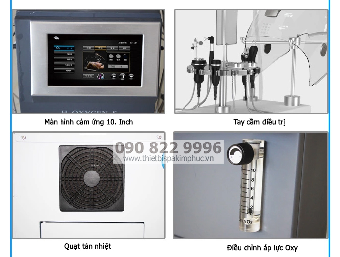 - Trên đó có một chai để đổ đầy sản phẩm dạng lỏng thiết yếu. Dưới áp lực mạnh mẽ, súng phun tạo ra oxy có độ tinh khiết 96,4% giúp Oxy và cả sản phẩm có thể xâm nhập sâu vào trong da, giúp sản phẩm phát huy tối đa công dụng.