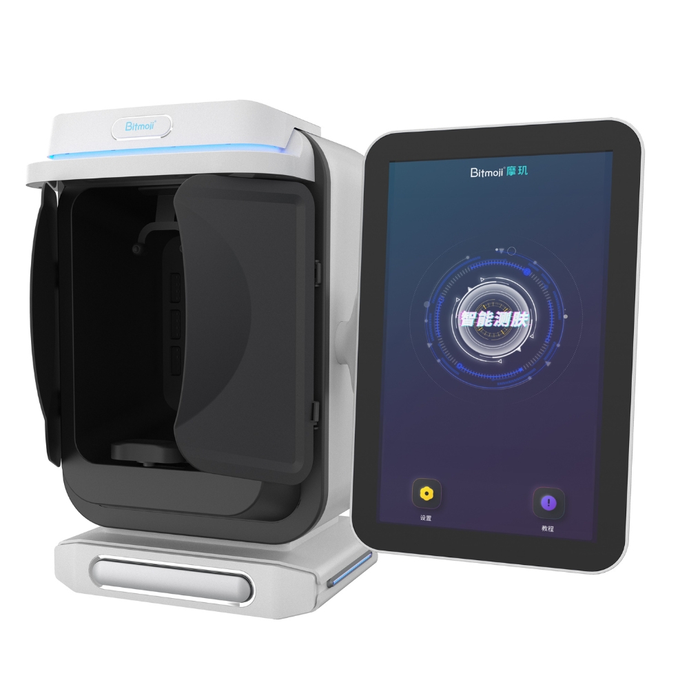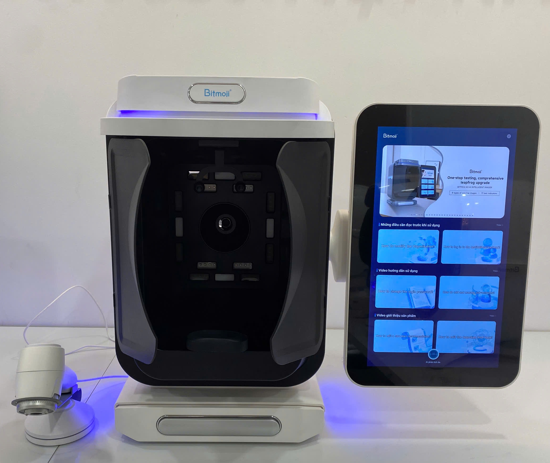 - Máy phân tích da Bitmoji A3 sử dụng công nghệ quét da hiện đại, kết hợp giữa các cảm biến quang học và phần mềm phân tích thông minh AI. Máy có khả năng phân tích da ở nhiều mức độ sâu khác nhau, từ lớp biểu bì đến lớp hạ bì, giúp phát hiện các vấn đề da mà mắt thường không thể nhìn thấy, chẳng hạn như tình trạng lão hóa da, tàn nhang, nám và các dấu hiệu tổn thương do tia UV.