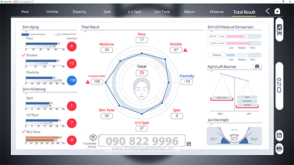 - Cho ra 12 thông số về các bệnh lý cũng như tình trạng hiện tại của da.