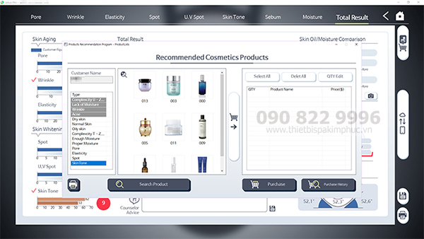 - Hệ thống cho phép lưu trữ và quản lý sản phẩm chăm sóc da riêng biệt, từ đó đưa ra các giải pháp điều trị bằng sản phẩm ngay trên phần mềm, vô cùng tiện lợi trong khâu quản lý.