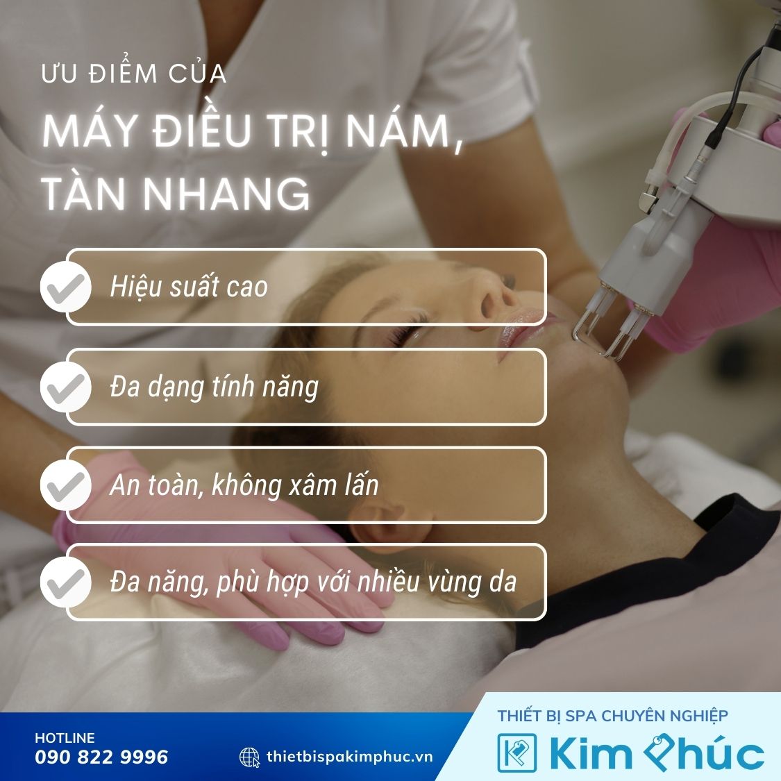 Máy điều trị nám, tàn nhang hiện đại mang đến nhiều ưu điểm vượt trội, giúp spa nâng cao hiệu quả điều trị và đáp ứng nhu cầu đa dạng của khách hàng.