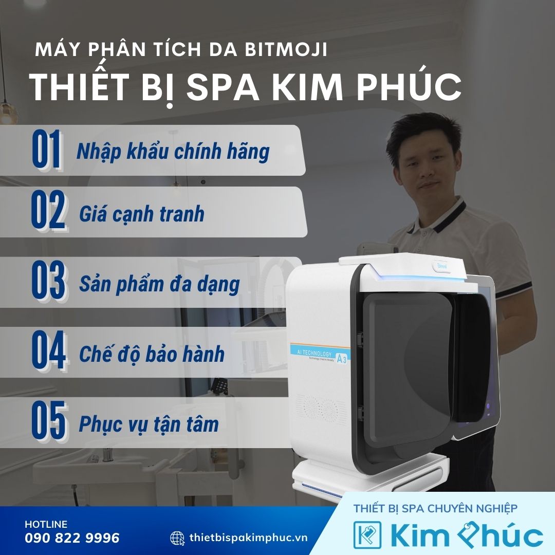 Liên hệ ngay với Thiết bị spa Kim Phúc để được tư vấn chi tiết về các dòng máy phân tích da ứng dụng công nghệ AI và các thiết bị spa hiện đại khác. Đầu tư vào công nghệ AI của máy phân tích da Bitmoji với Kim Phúc ngay hôm nay chính là đặt nền móng vững chắc cho sự phát triển bứt phá của spa bạn trong tương lai!