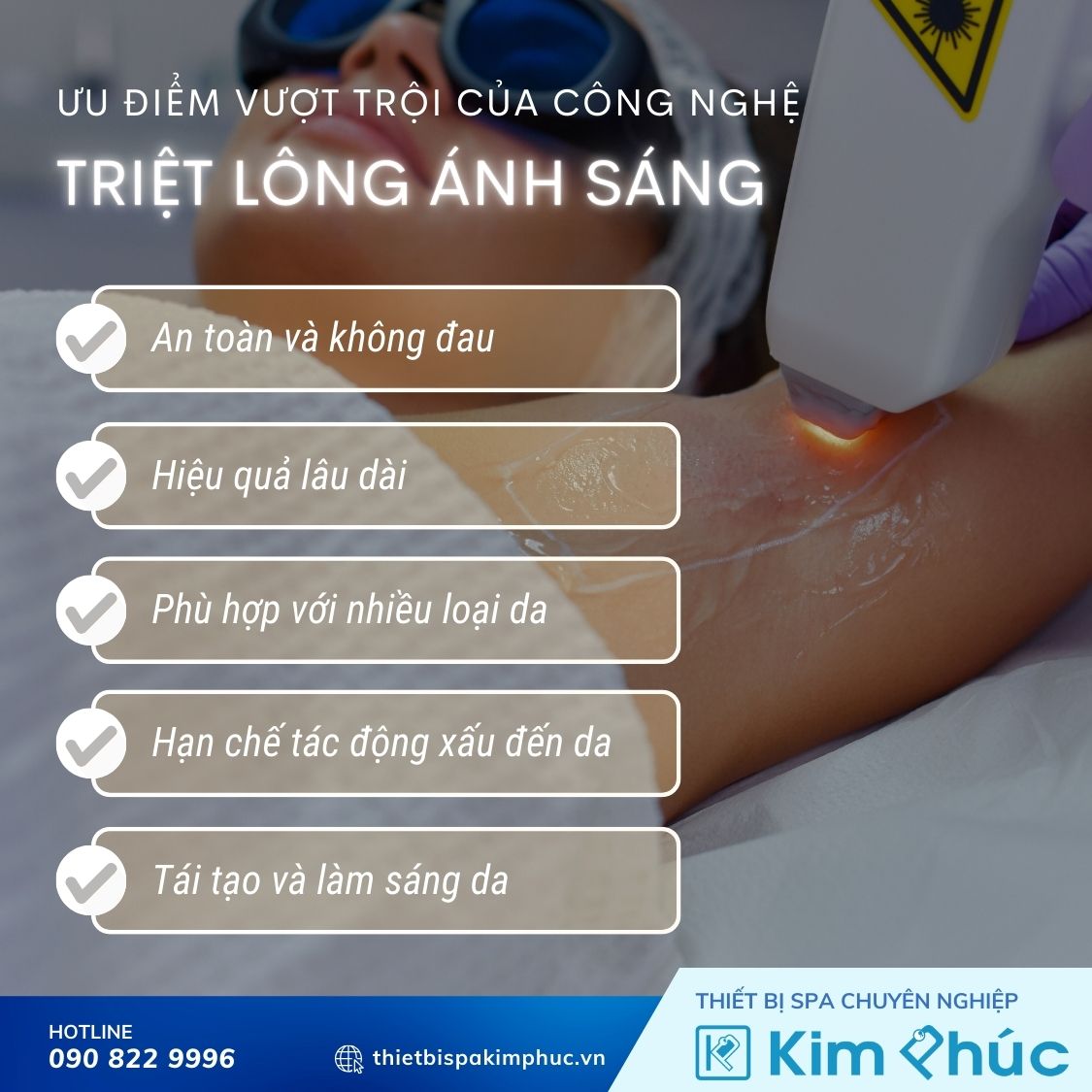 Công nghệ triệt lông ánh sáng (IPL) là giải pháp an toàn, hiệu quả và tiện lợi, giúp spa nâng cao chất lượng dịch vụ và thu hút khách hàng. Hãy liên hệ ngay với Kim Phúc để được tư vấn và lựa chọn máy triệt lông IPL phù hợp nhất!
