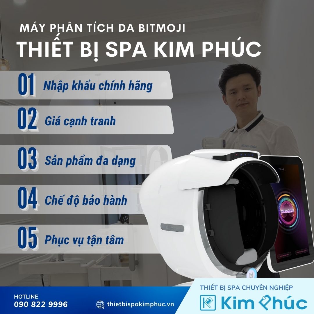 Truy cập website hoặc liên hệ trực tiếp với Thiết bị spa Kim Phúc ngay hôm nay để được tư vấn chi tiết đánh giá máy phân tích da Bitmoji và các thiết bị spa chuyên nghiệp khác. Nâng cấp công nghệ cho spa của bạn, nâng tầm trải nghiệm cho khách hàng và bứt phá doanh thu cùng Thiết bị spa Kim Phúc!