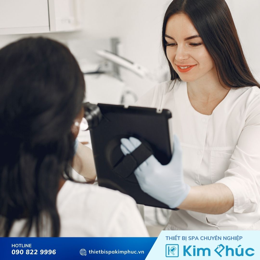 Không chỉ cung cấp máy móc chất lượng, Kim Phúc còn mang đến dịch vụ hỗ trợ toàn diện, đặt sự hài lòng của khách hàng lên hàng đầu. Đội ngũ chuyên viên giàu kinh nghiệm của chúng tôi luôn sẵn sàng tư vấn chi tiết về máy móc, quy trình xóa xăm, giúp khách hàng lựa chọn giải pháp phù hợp nhất với nhu cầu kinh doanh. Bên cạnh đó, chúng tôi hỗ trợ chuyển giao công nghệ tận nơi, hướng dẫn vận hành máy móc một cách bài bản, giúp chủ spa và kỹ thuật viên nhanh chóng nắm vững kiến thức và kỹ năng cần thiết.