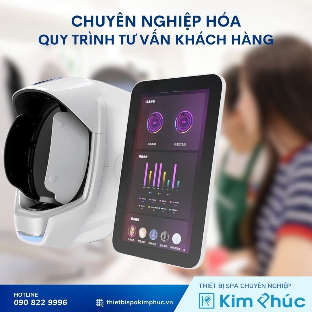 Ngoài các phòng khám da liễu, đối tượng sử dụng máy phân tích da Bitmoji A5 còn là các spa và thẩm mỹ viện mong muốn nâng cao chất lượng dịch vụ và thu hút khách hàng bằng công nghệ tiên tiến. Trong môi trường spa và thẩm mỹ, việc tư vấn khách hàng một cách chuyên nghiệp và thuyết phục là yếu tố then chốt để chốt liệu trình và tạo dựng lòng trung thành. Với màn hình cảm ứng 15.6 inch sắc nét và giao diện thân thiện, Bitmoji A5 cho phép kỹ thuật viên thực hiện các thao tác chụp ảnh, tạo báo cáo và phân tích chỉ bằng một chạm, mang đến trải nghiệm trực quan và dễ dàng cho cả người sử dụng và khách hàng. Khả năng chụp ảnh đa góc (trái – phải – chính diện) đảm bảo thu thập đầy đủ dữ liệu về tình trạng da từ mọi góc độ. Các báo cáo phân tích da được xuất ra rõ ràng, trực quan và dễ hiểu, giúp khách hàng dễ dàng nắm bắt tình trạng da của mình và hiểu được lợi ích của các liệu trình được đề xuất. Điều này không chỉ giúp tăng tỷ lệ chốt liệu trình mà còn tạo dựng niềm tin và sự hài lòng cho khách hàng, biến họ thành những khách hàng thân thiết và trung thành. Việc ứng dụng Bitmoji A5 không chỉ giúp các spa và thẩm mỹ viện cung cấp dịch vụ chăm sóc da hiệu quả hơn mà còn định vị họ là những cơ sở dẫn đầu về công nghệ, tạo lợi thế cạnh tranh mạnh mẽ trên thị trường.