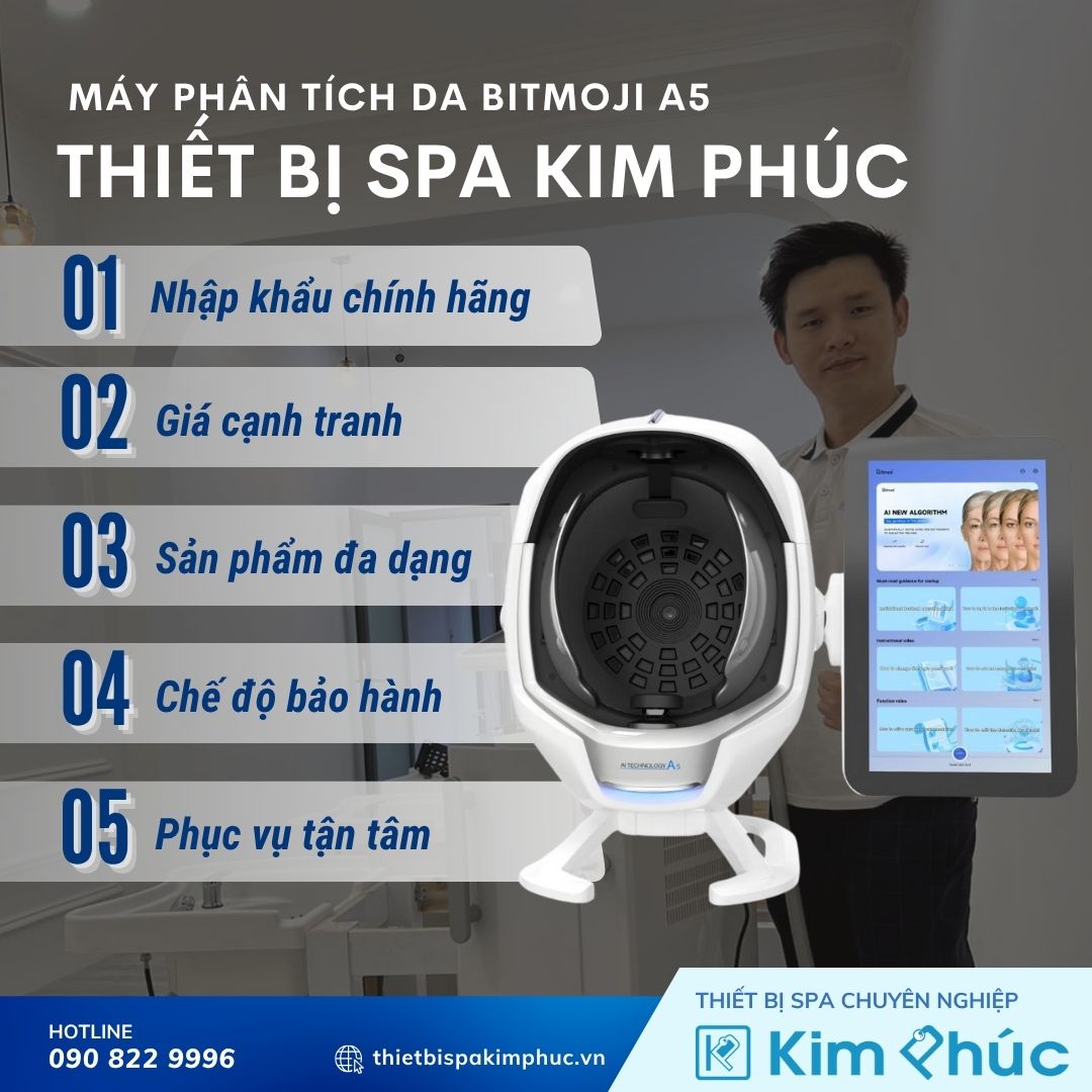 Nếu bạn đang hoạt động trong lĩnh vực chăm sóc và điều trị da chuyên nghiệp thì bạn chính là đối tượng sử dụng máy phân tích da Bitmoji A5 công nghệ hàng đầu hiện nay. Hãy liên hệ ngay với Thiết bị spa Kim Phúc để được tư vấn thêm thông tin chi tiết về máy phân tích da Bitmoji A5 và sở hữu thiết bị công nghệ tiên tiến này với chính sách giá chính hãng tốt nhất!