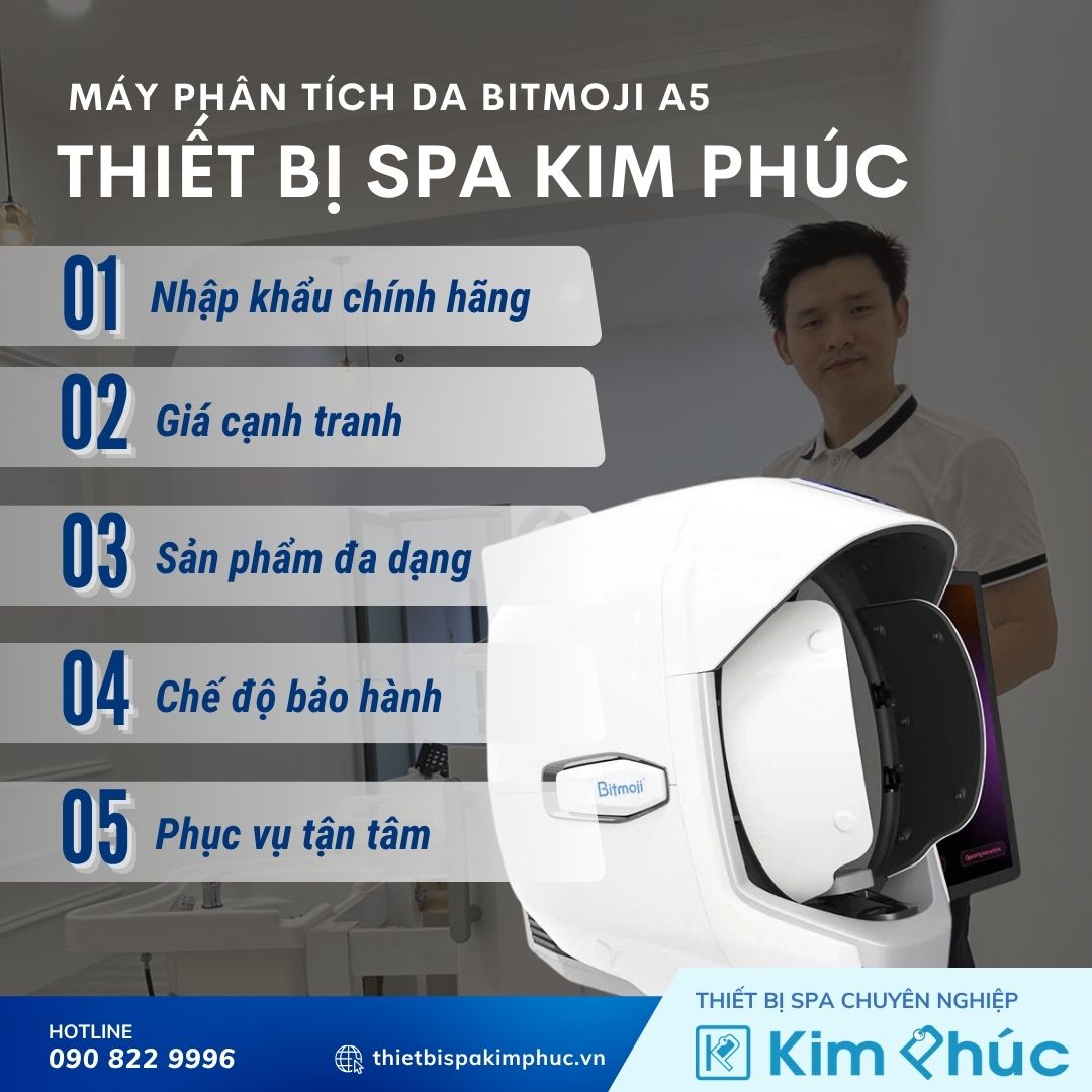 Máy phân tích da công nghệ AI Bitmoji A5 thực sự là một công cụ không thể thiếu trong các cơ sở chăm sóc da hiện đại. Với khả năng phân tích chuyên sâu, chính xác và trực quan, Bitmoji A5 không chỉ nâng cao chất lượng dịch vụ mà còn tạo dựng niềm tin vững chắc từ phía khách hàng. Để sở hữu và trải nghiệm những công nghệ hàng đầu này, hãy liên hệ ngay với Thiết bị spa Kim Phúc. Chúng tôi cam kết cung cấp các thiết bị spa hàng đầu với chính sách giá chính hãng, đảm bảo mang đến sự hỗ trợ tốt nhất cho quý khách hàng trên hành trình chăm sóc và nâng tầm vẻ đẹp.