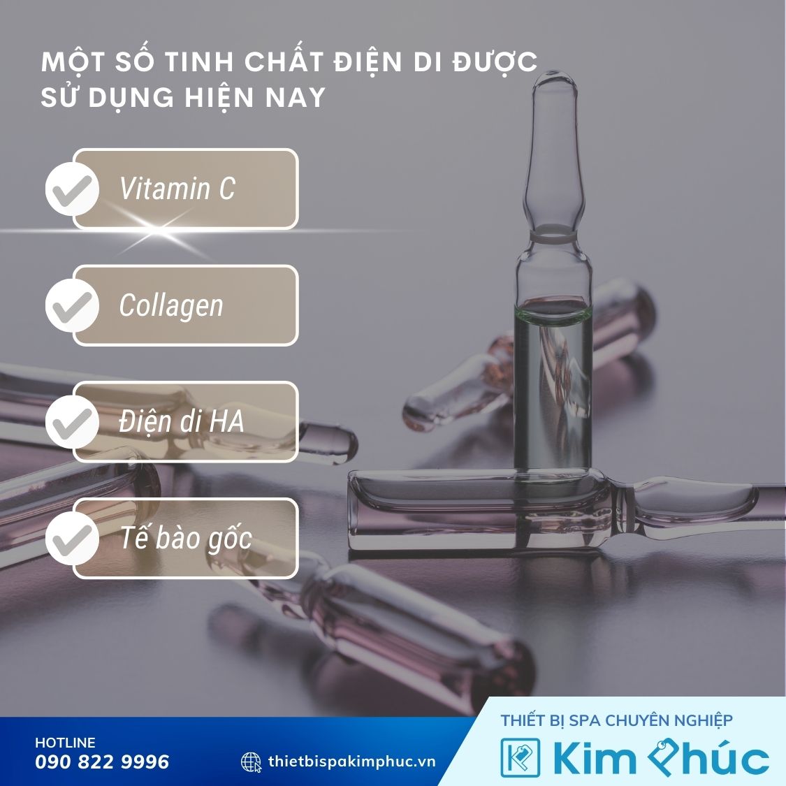 Tinh chất được đưa vào da mặt bằng phương pháp điện di sẽ có hiệu quả nhanh hơn việc thoa dưỡng chất lên bề mặt như cách làm truyền thống. Dưới đây là một số tinh chất dưỡng da phổ biến thường được sử dụng để điện di làm đẹp da mặt.