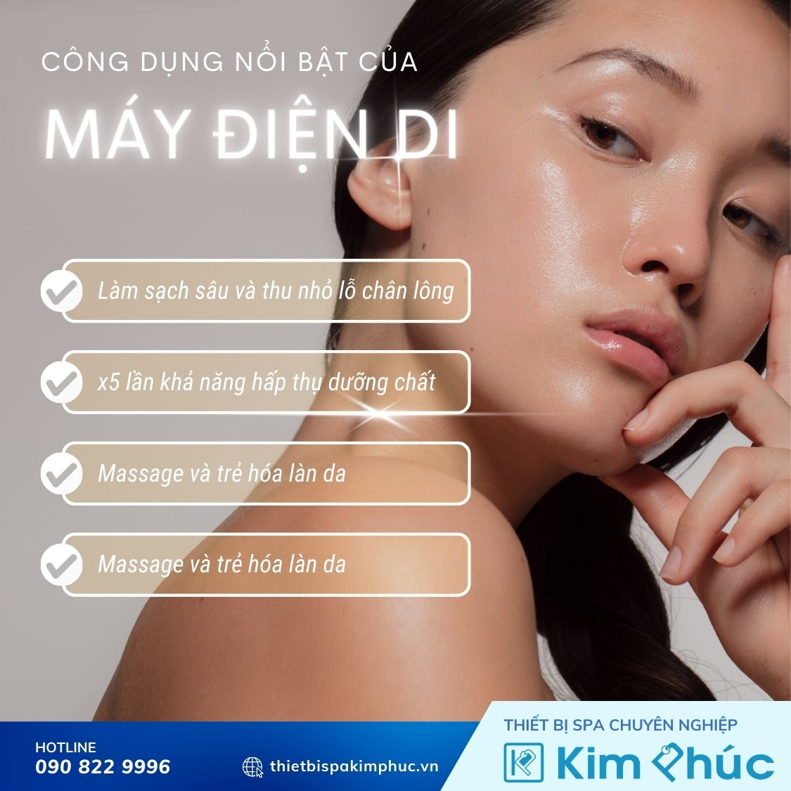 Máy điện di luôn là thiết bị không thể thiếu tại các spa làm đẹp hàng đầu, còn được gọi là "cứu tinh" của làn da, mang đến nhiều công dụng vượt trội nhờ khả năng tác động sâu và toàn diện.
