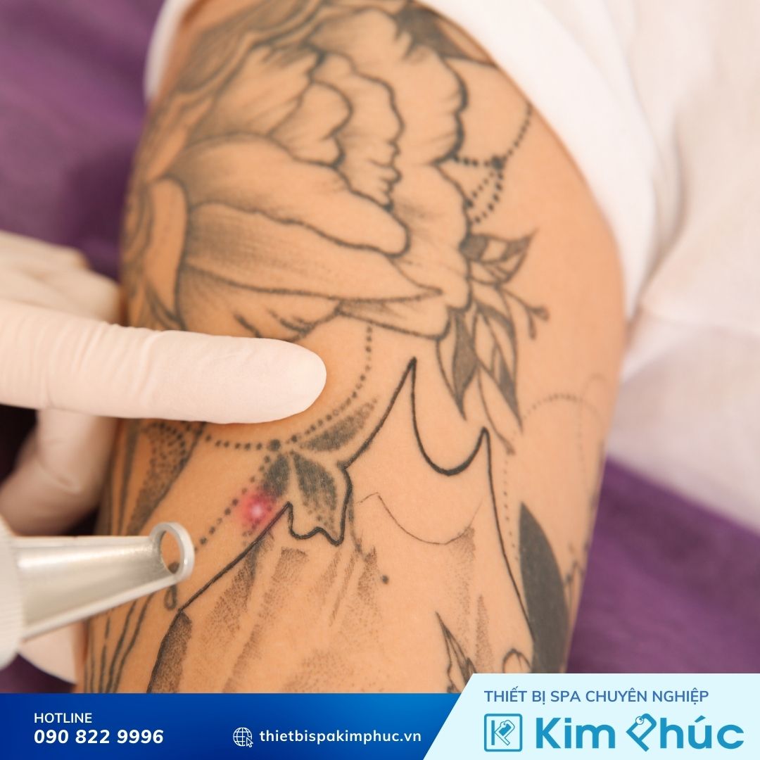 Bắn laser: Kỹ thuật viên sử dụng máy laser xóa xăm X9 để chiếu các xung ngắn với năng lượng cao vào vùng da cần xóa xăm. Tia laser sẽ phá vỡ các hạt mực xăm thành những mảnh nhỏ.