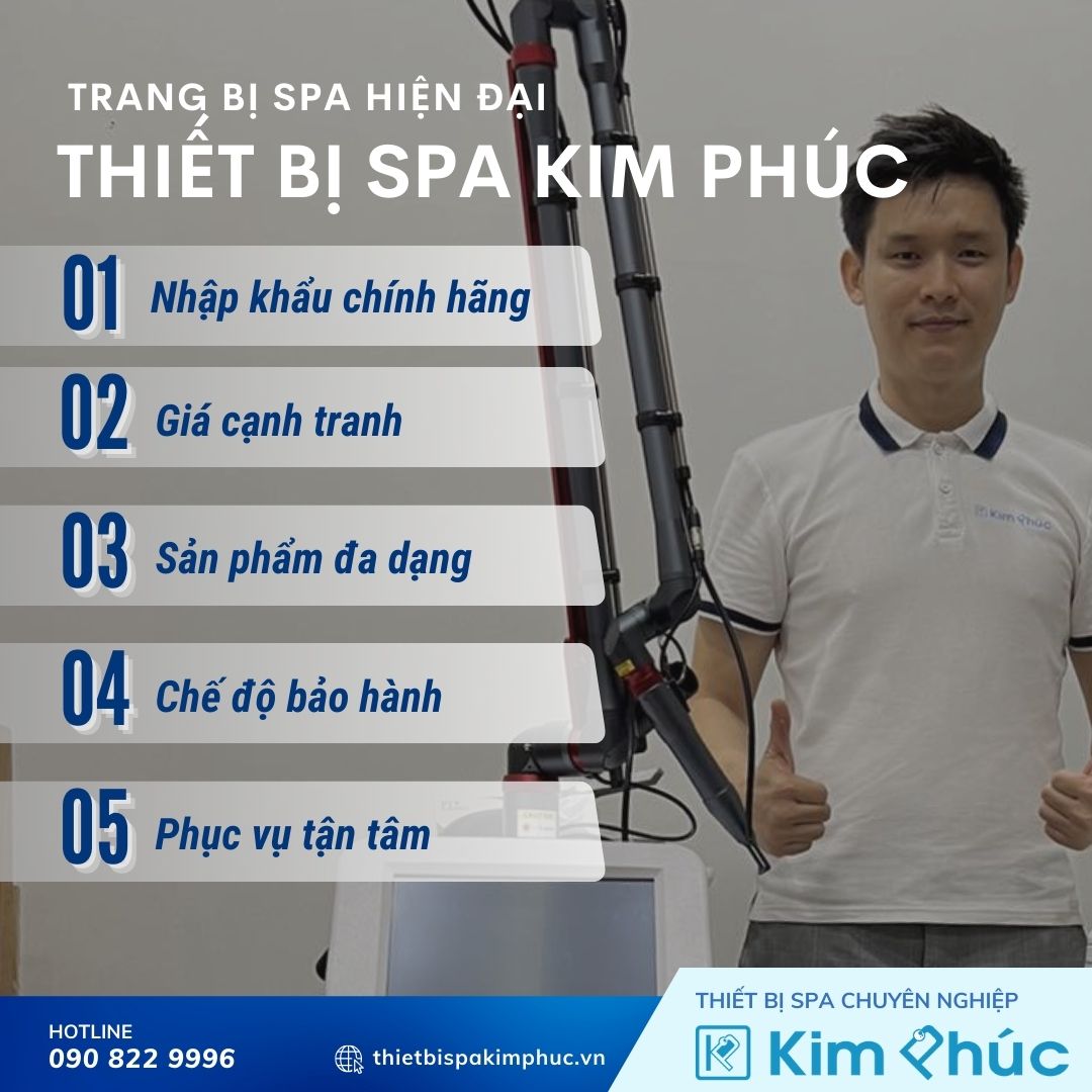 Thiết bị spa Kim Phúc là đơn vị chuyên cung cấp các thiết bị thẩm mỹ chính hãng, uy tín, chất lượng cao. Kim Phúc cam kết: