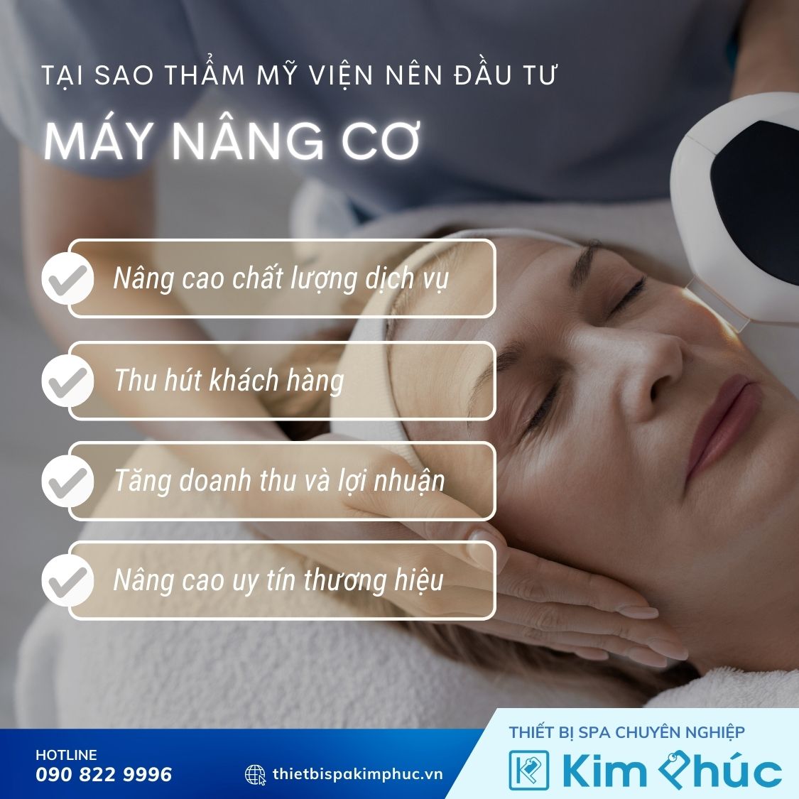 Tăng doanh thu và lợi nhuận: Máy nâng cơ cho phép thẩm mỹ viện mở rộng dịch vụ, thu hút nhiều khách hàng hơn, từ đó tăng doanh thu và lợi nhuận.