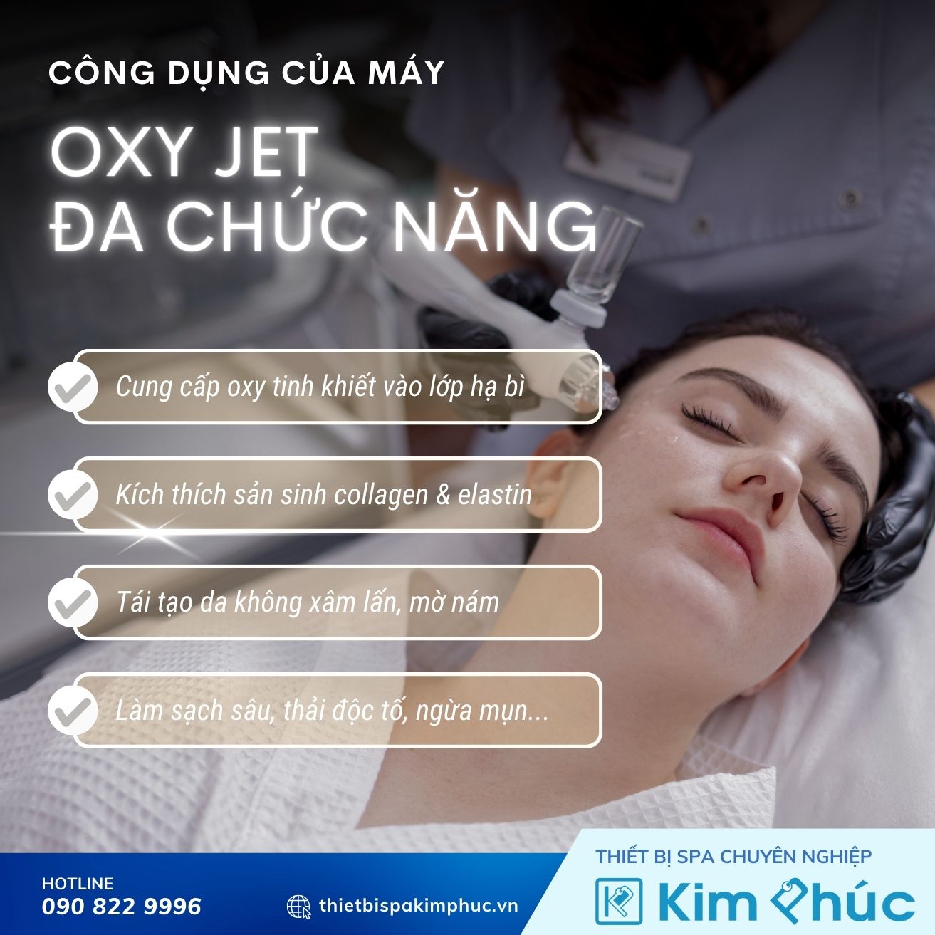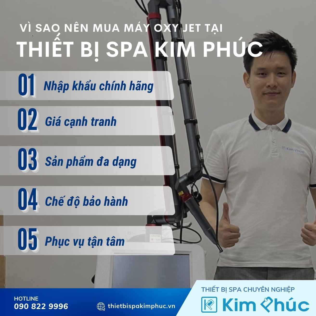 Với những thông tin chi tiết về chức năng của máy như trên, bạn có thể thấy rõ những ưu điểm vượt trội và hiệu quả mà máy mang lại. Điều này cũng phần nào giải thích lý do vì sao dòng máy Oxy Jet đa chức năng lại được ưa chuộng và sử dụng rộng rãi tại các spa hiện nay. Nếu bạn muốn tìm hiểu thêm về sản phẩm hoặc cần tư vấn cụ thể, đừng ngần ngại liên hệ ngay với Kim Phúc để được hỗ trợ tốt nhất!