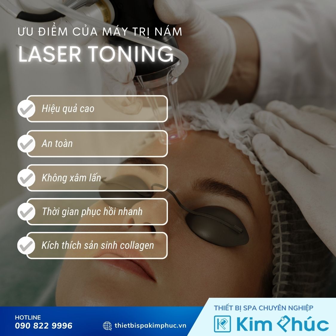 Hiệu quả cao: Laser Toning có khả năng loại bỏ các loại nám, tàn nhang, đồi mồi hiệu quả, kể cả nám sâu và nám hỗn hợp.