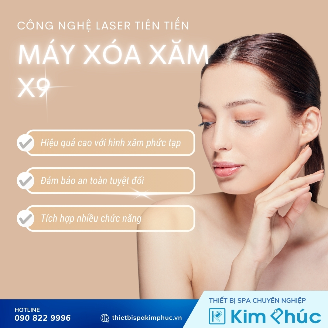 Máy xóa xăm X9 là một thiết bị laser tiên tiến, hiệu quả và an toàn, là lựa chọn lý tưởng cho các thẩm mỹ viện chuyên nghiệp. Với công nghệ laser hiện đại, đa chức năng và nhiều ưu điểm vượt trội, máy xóa xăm X9 giúp nâng cao chất lượng dịch vụ, thu hút khách hàng và tăng doanh thu cho thẩm mỹ viện. Hãy liên hệ với nhà cung cấp uy tín như Thiết bị spa Kim Phúc để mua máy laser xóa xăm X9 cho thẩm mỹ viện chính hãng cũng như nhận được sự hỗ trợ tốt nhất trong khâu tư vấn, vận chuyển, lắp đặt chuyển giao công nghệ, sửa chữa trong suốt thời gian sử dụng.