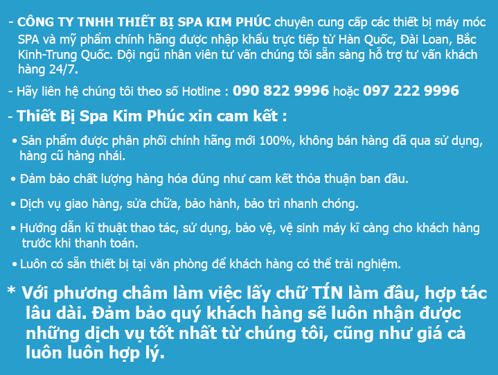 Những khách hàng đang sinh sống tại TPHCM hãy đến ngay cửa hàng Thiết Bị Spa Kim Phúc để xem sản phẩm thực tế và đưa ra sự lựa chọn cho mình.