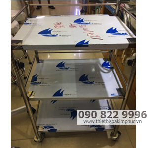 - Xe được thiết kế 3 tầng với kích thước 38 * 50 * 82 cm. Bề mặt mỗi tầng được làm bằng nhựa cứng, giúp giảm trọng lượng cho xe đẩy, nhưng cũng hạn chế đặt các thiết bị có trọng lượng lớn lên trên. Có thêm một ngăn kéo nhỏ ở tầng trên cùng, giúp Quý khách có thể để được các vật tư tiêu hao cho quá trình điều trị.